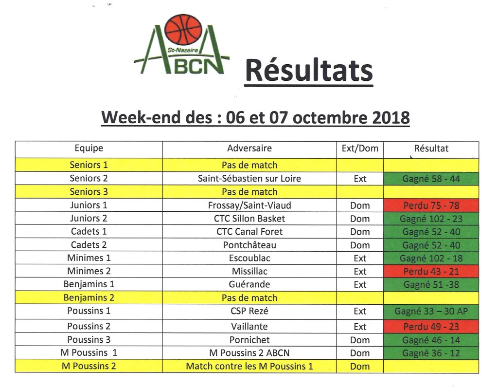 Résultats du week-end 06/07 octobre