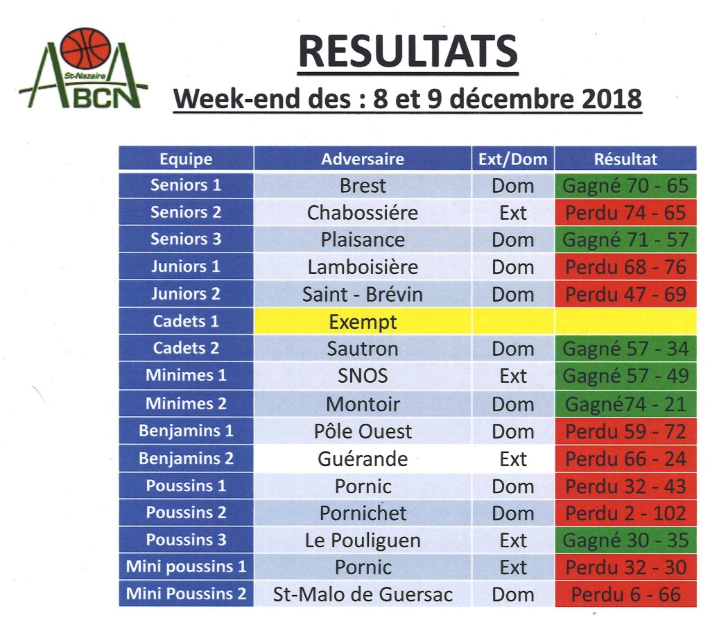 Résultats du week-end 08/09 décembre