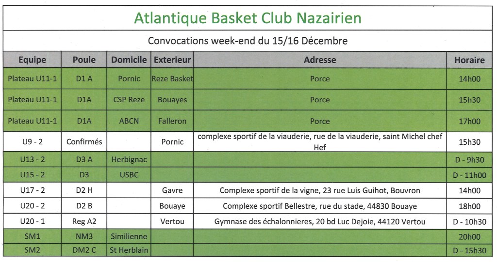 Planning du 15/16 décembre