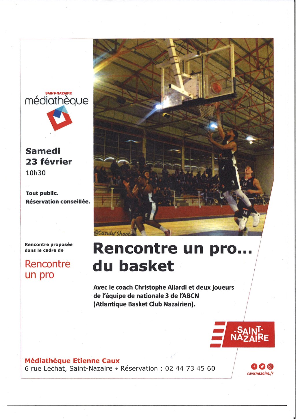 Vous rêvez de devenir basketteur de haut niveau ? Christophe Allardi, coach de l’équipe de l’ABCN et cadre des U18 France, ainsi que deux joueurs engagés en nationale 3 à Saint-Nazaire vous expliqueront toutes les coulisses de ce sport spectaculaire.