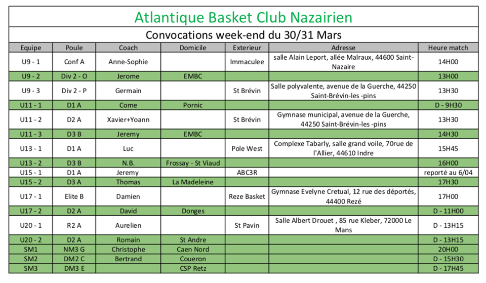 Planning du 30/31 mars