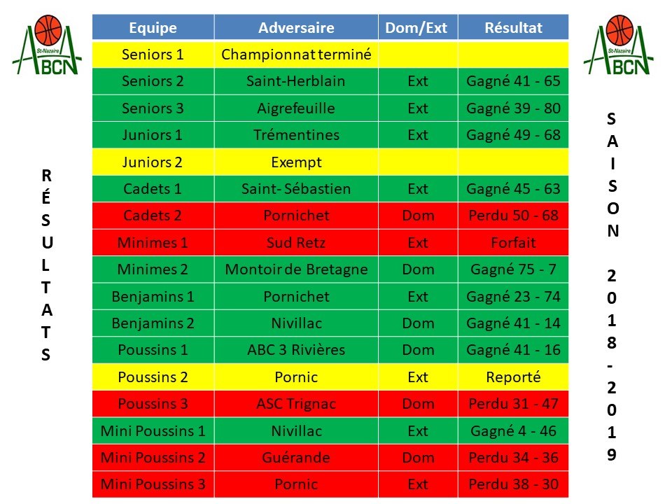 Derniers résultats de la saison