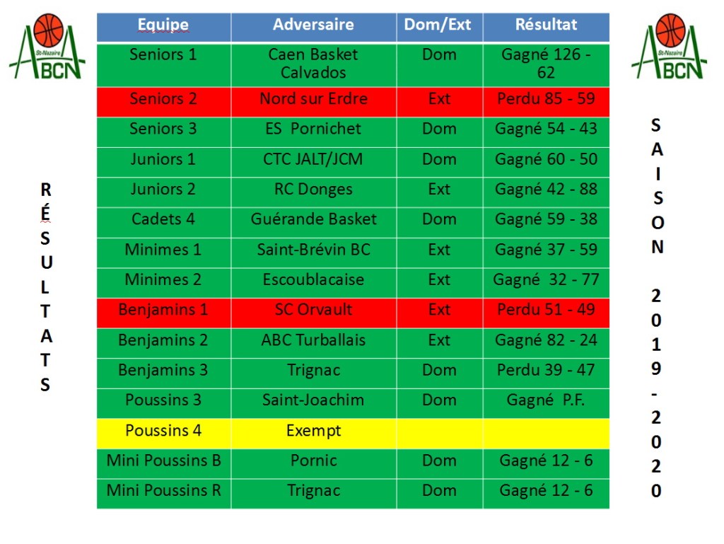 Résultats du week-end 30 novembre 1er décembre