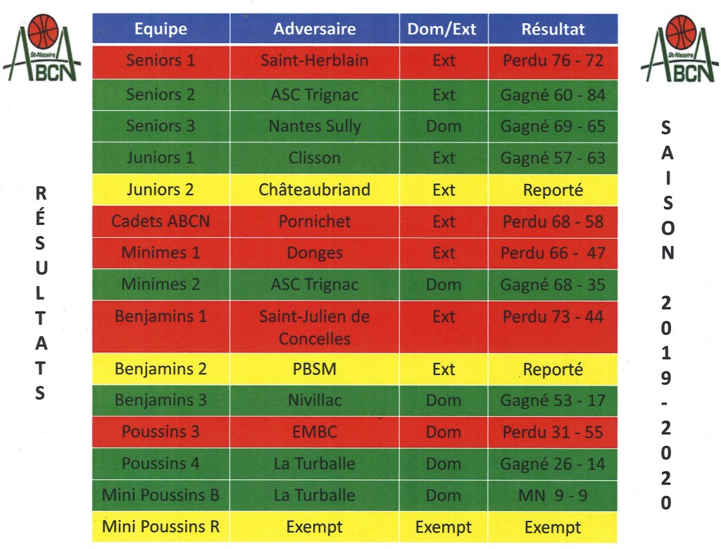 Résultats du week-end 18 et 19 janvier